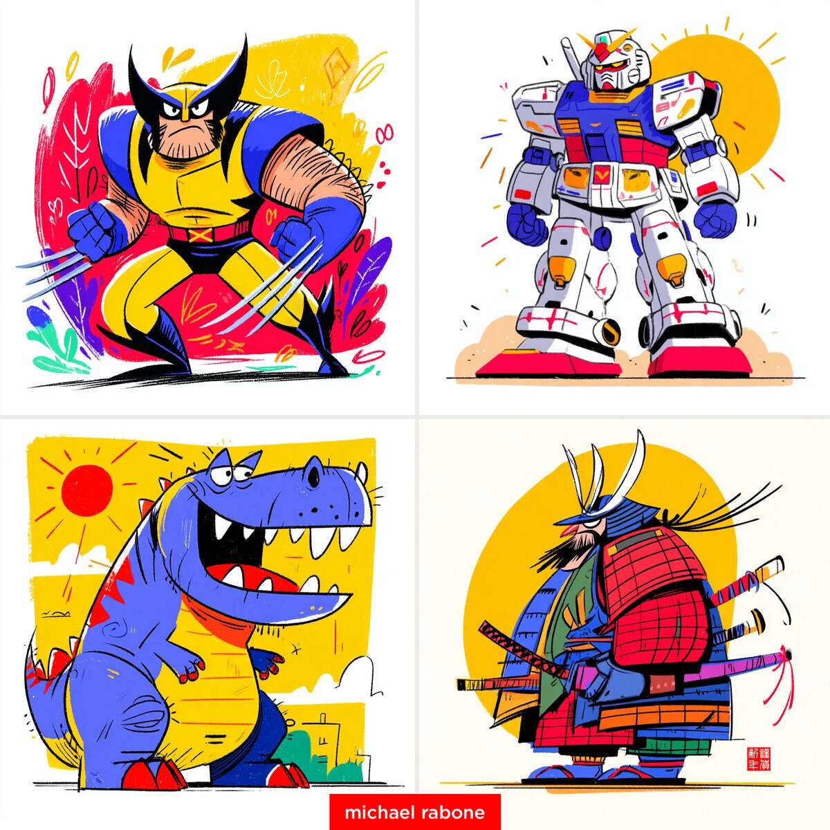 New Style --sref 3543270584 Sketchy Expressive Characters New Midjourney style, bold, sketchy, graphic illustrations with vibrant flat colours, expressive playful character exaggeration, and hand-drawn, energetic feel Wolverine --sref 3543270584 --sw 100 --stylize 300 --v 7