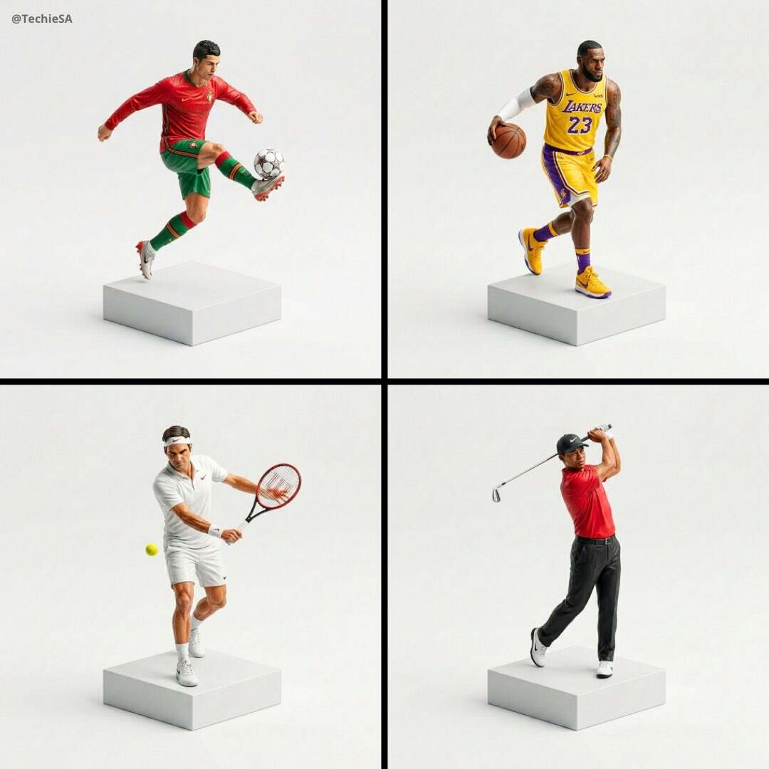 Make a miniature, full-body, isometric, realistic figurine of [PERSON], wearing their iconic sports outfit, performing their signature sport action, on a white background, minimal, 1080x1080, 4K resolution.