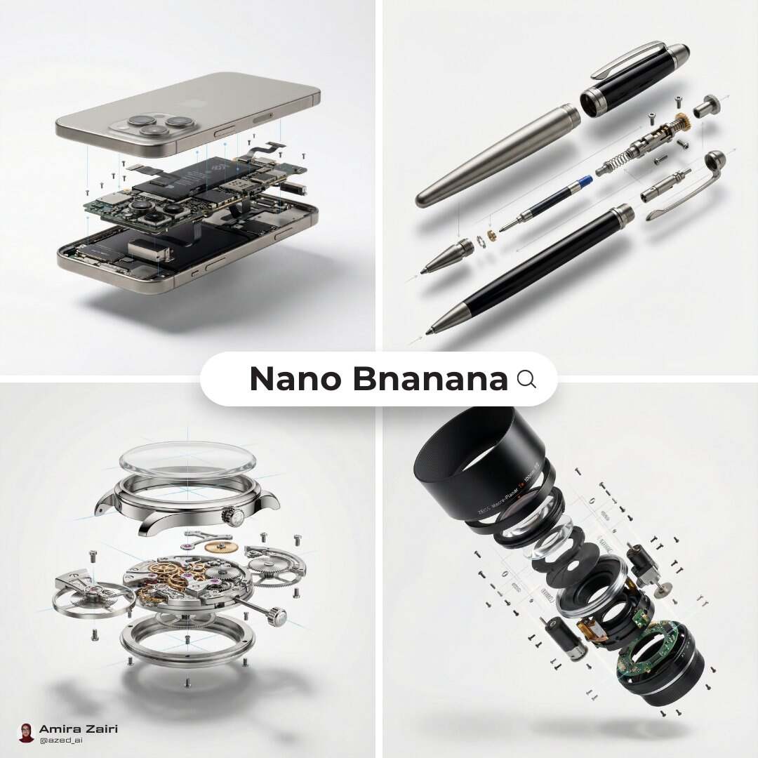 Create an exploded products with inner mechanics [product], high-end product advertising, white seamless background, exploded view with inner mechanics revealed, outer shell hovering above core, micro screws and components suspended, perfect alignment guides implied, crisp soft shadow, ultra realistic, macro product photography, 100mm lens look, f/8, 8k, 1:1