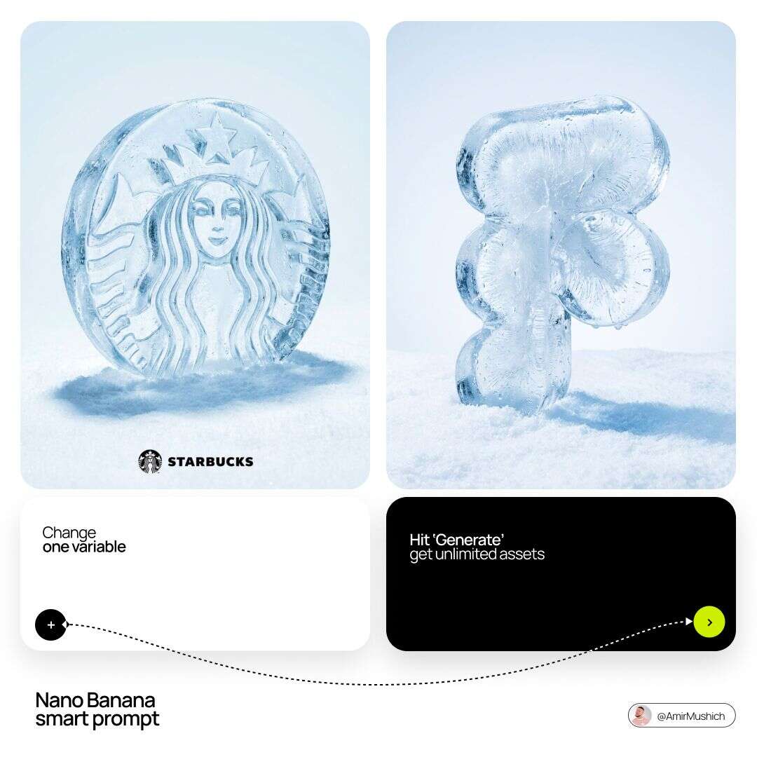 [BRAND NAME]: Enter the brand name here. Goal: Generate a hyper-realistic studio photograph where the stylized logo icon of [BRAND NAME] is a physical 3D ice sculpture lying directly on a snowy surface. Constraint: NO TEXT inside or immediately near the central ice icon. Only the bottom signature. Light, airy background. 1. THE CENTRAL ICE ARTIFACT - Main Subject: A large, 3D volumetric sculpture in the exact shape of the [BRAND NAME] logo icon. - Material: Crafted from high-purity crystalline ice with intricate internal textures, frost needles, and frozen air bubbles. - Details: The surface of the ice logo is covered with small, realistic water droplets and light condensation. - Perspective: The logo is positioned at a 3/4 angle, lying horizontally on the snow to show its depth and thickness. 2. ENVIRONMENT & LAYOUT - View: Eye-level macro perspective, 3/4 view. - Surface: The logo is resting on a field of crisp, detailed, white powdery snow. - Background: A flawless, uniform, very light pale blue and white gradient background (much lighter than the original). - Shadow: A soft, realistic shadow is cast on the snow directly beneath the ice icon to ground it. 3. BOTTOM BRAND SIGNATURE (CRITICAL) - Placement: A clean horizontal signature block centered at the bottom of the frame, far below the ice artifact. - Elements: A tiny, flat, minimalist black version of the [BRAND NAME] logo icon on the left. - Text: The word "[BRAND NAME]" in a clean, bold, black sans-serif typeface immediately to the right of the tiny logo. - Scale: The signature is very small and subtle compared to the main ice sculpture. 4. AESTHETIC - Premium product photography, cold and crisp atmosphere, hyper-realistic 8k resolution, cinematic lighting, ultra-detailed textures.